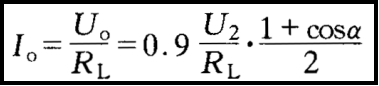 α=0,Uo=0.9U2,输出电压最高,相当于不可控二极管单相桥式整流电压;α=180°,Uo=0,可控硅全关断。负载电阻RL中整流电流的平均值为: