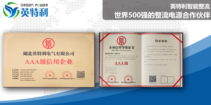 此次被评为“AAA级信用企业‘’是对im电竞智能整流美誉度、知名度和市场信用度的认可,也是对一直在大功率直流稳压稳流电源、高频脉冲开关电源、可控硅整流器、各种电镀电源、各种电解电源等等整流产品设备坚持诚信经营,提供优质服务的充分肯定。im电竞公司也将以此为契机,继续努力。
