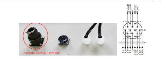整流器可以通过4-20mA模拟和I / O信号进行远程控制和监视。 远程控制信号通过14针航空插头连接到整流器,如图所示。 如果需要远程控制,请首先在触摸屏上将整流器模式设置为“远程”。